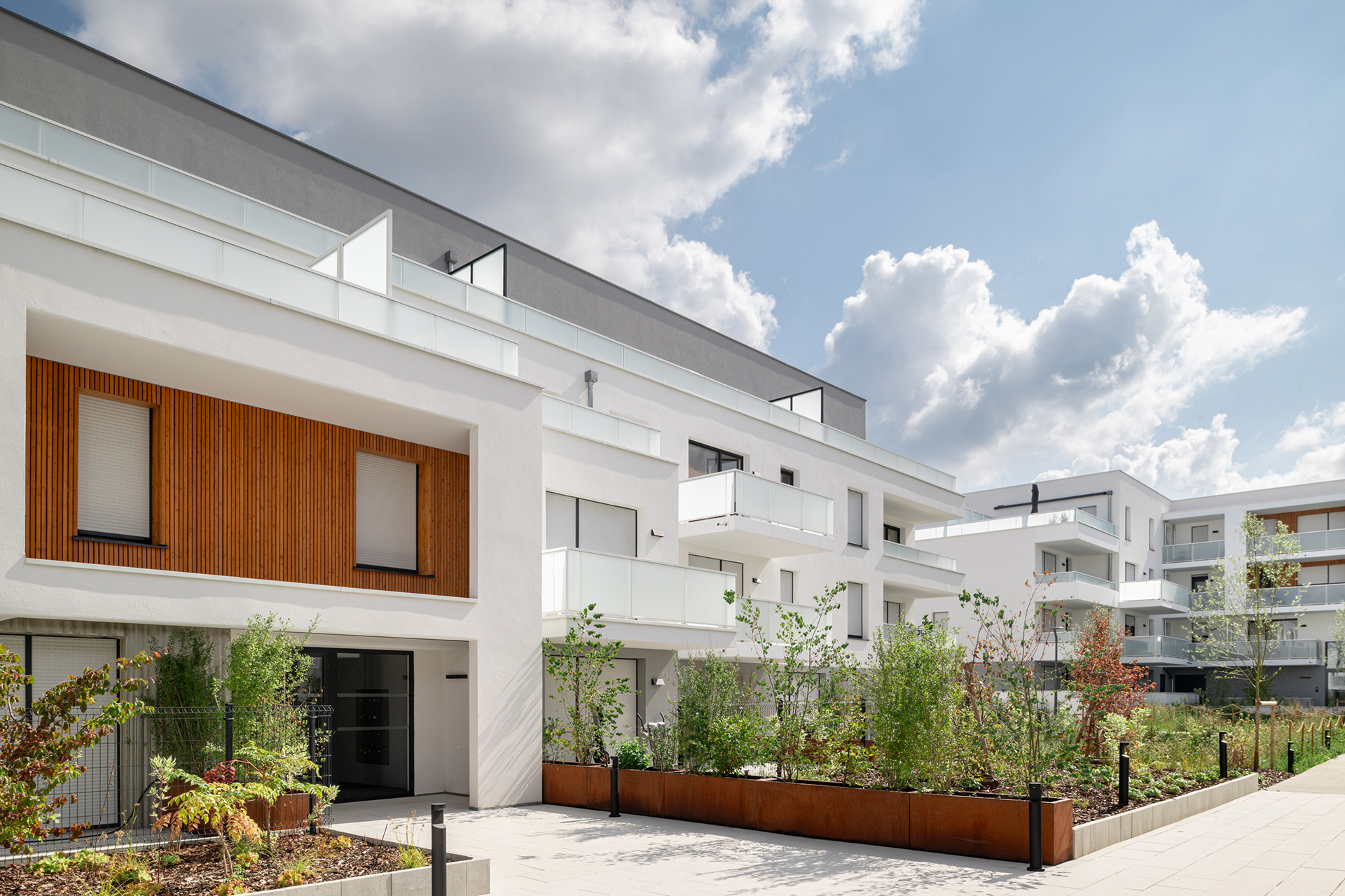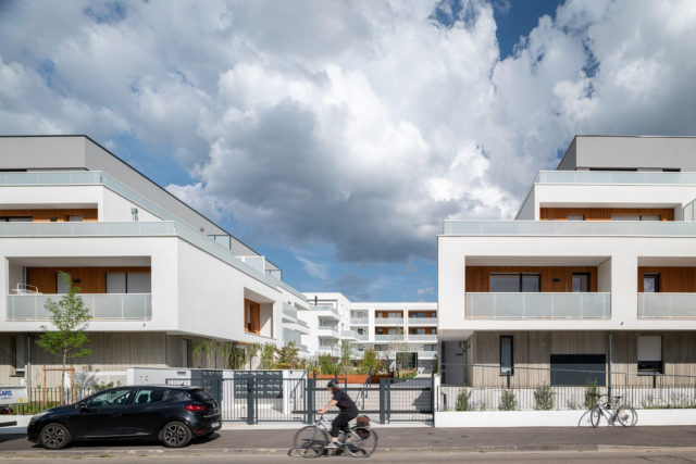 Conçu par Oslo architectes et @Acte2Paysage, ce projet de 98 logements s’inscrit dans un site exceptionnel, entre le Canal de la Marne au Rhin et la rue de l’Aigle.