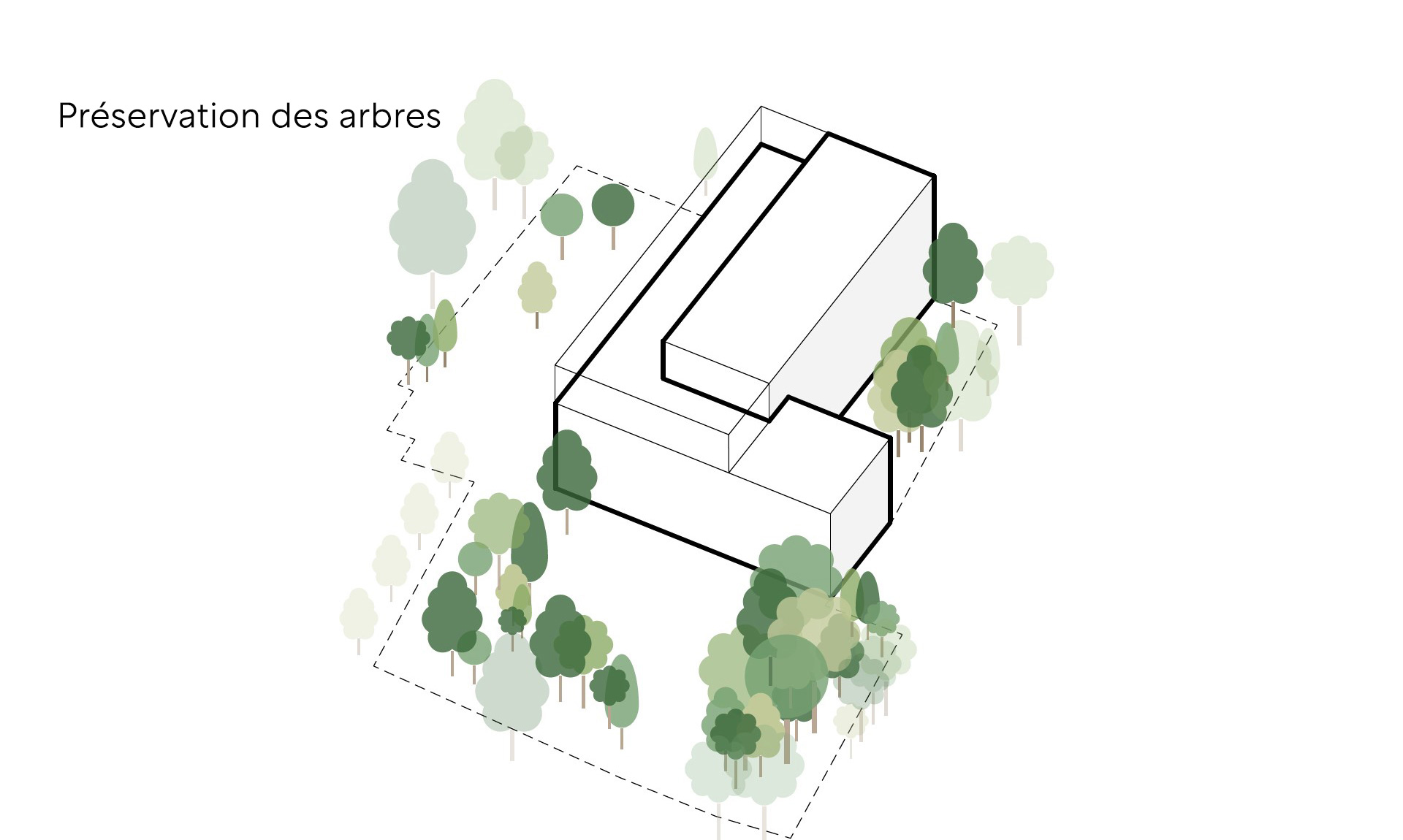 A la fois précis et protecteur, le bâtiment de la nouvelle école primaire fait de la préservation du patrimoine arboré une force structurante.