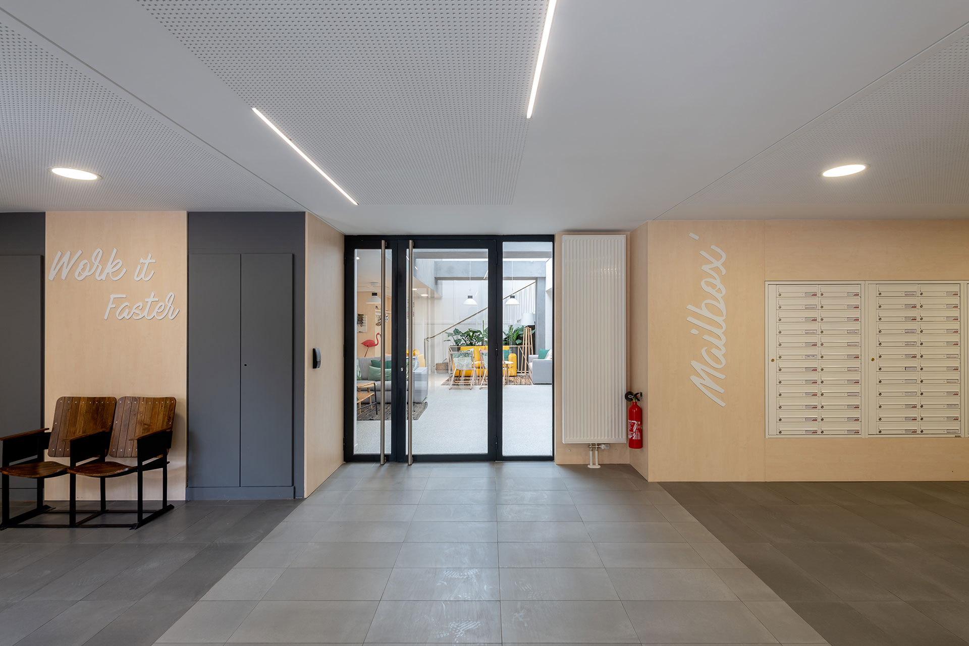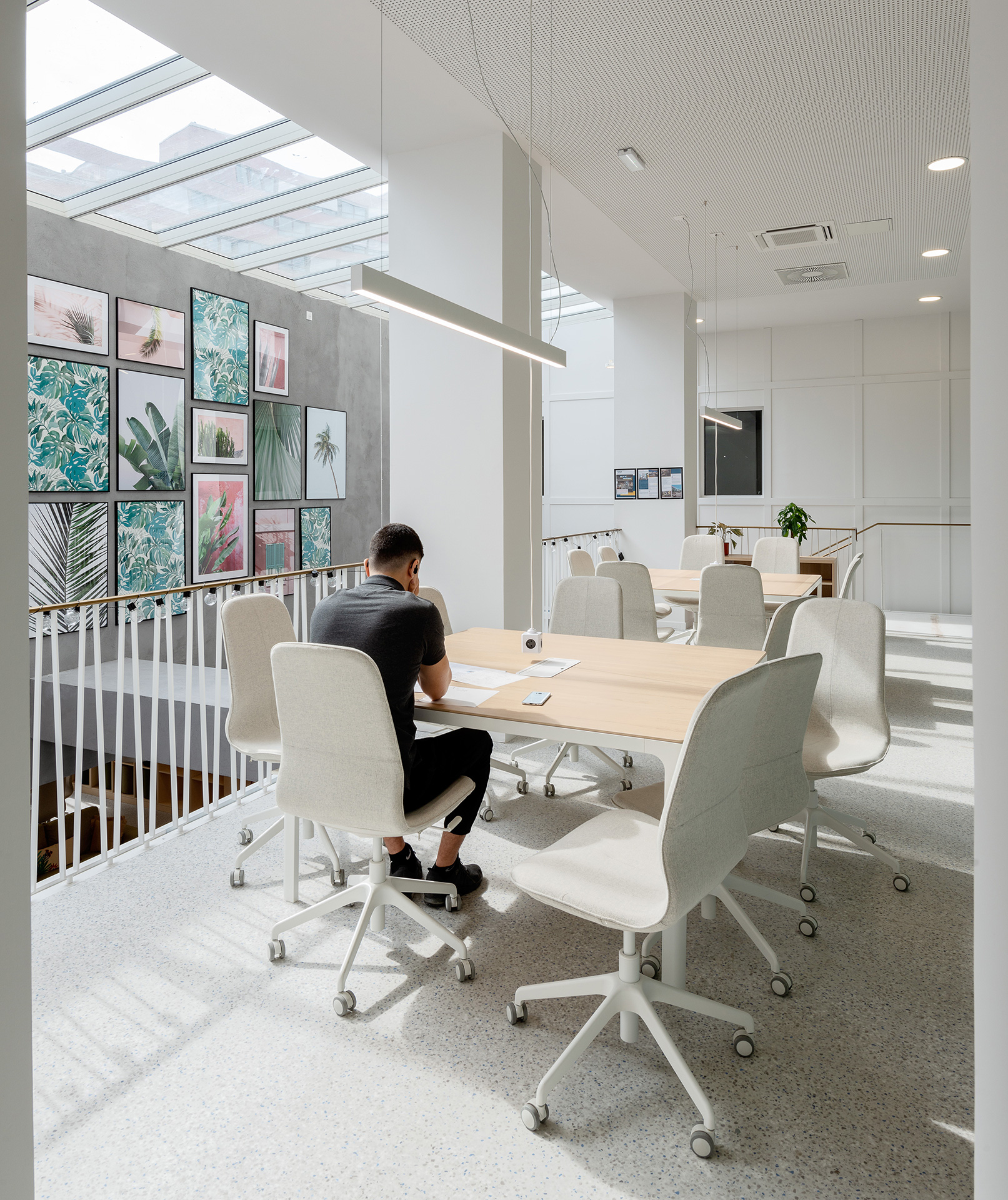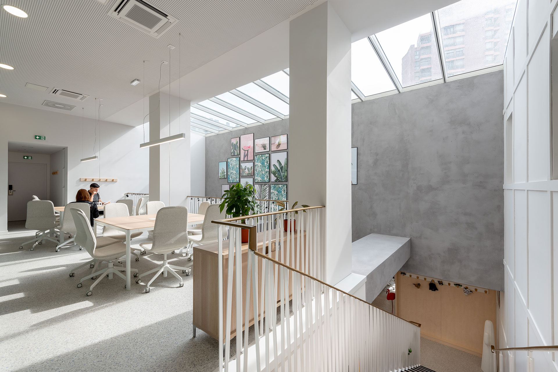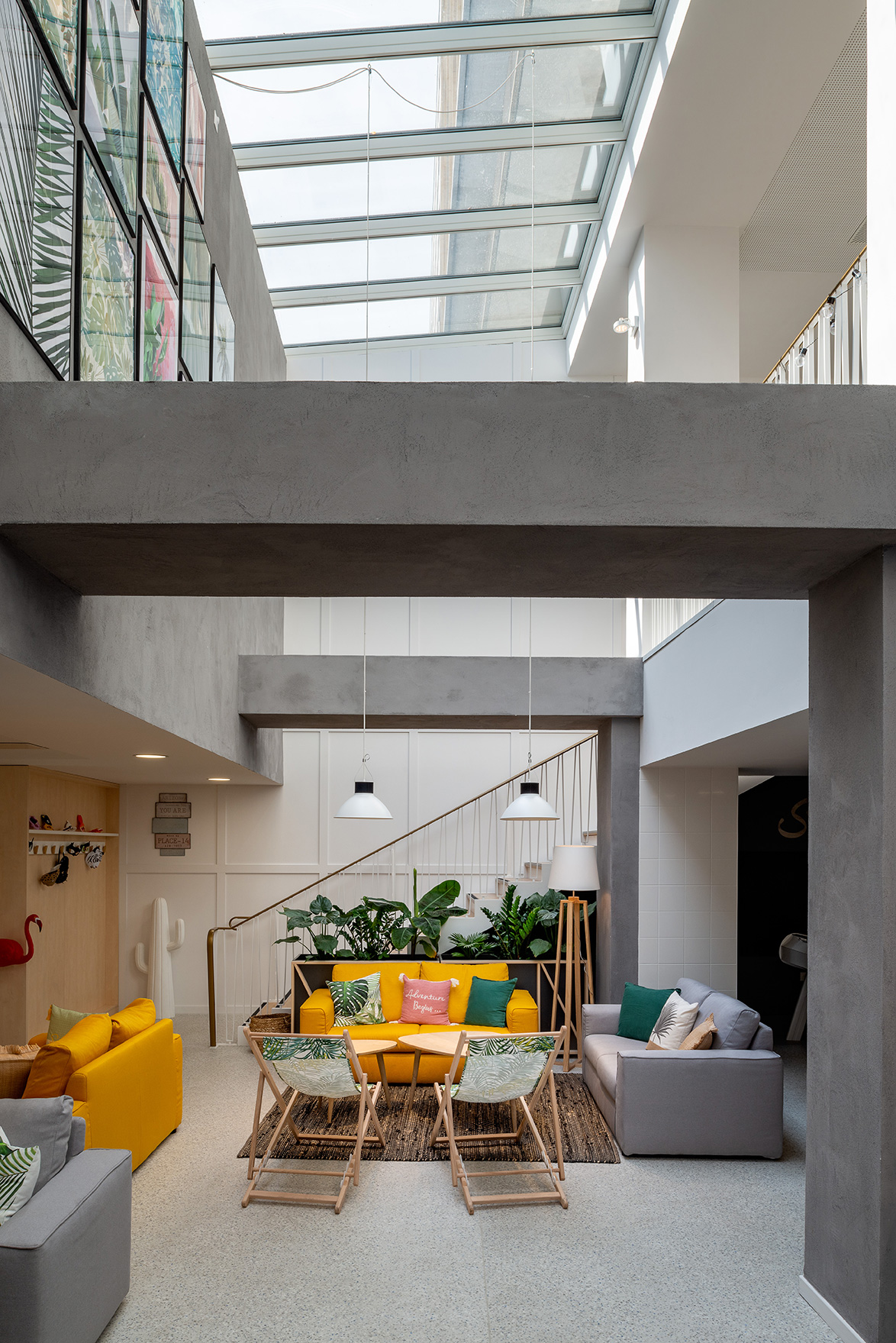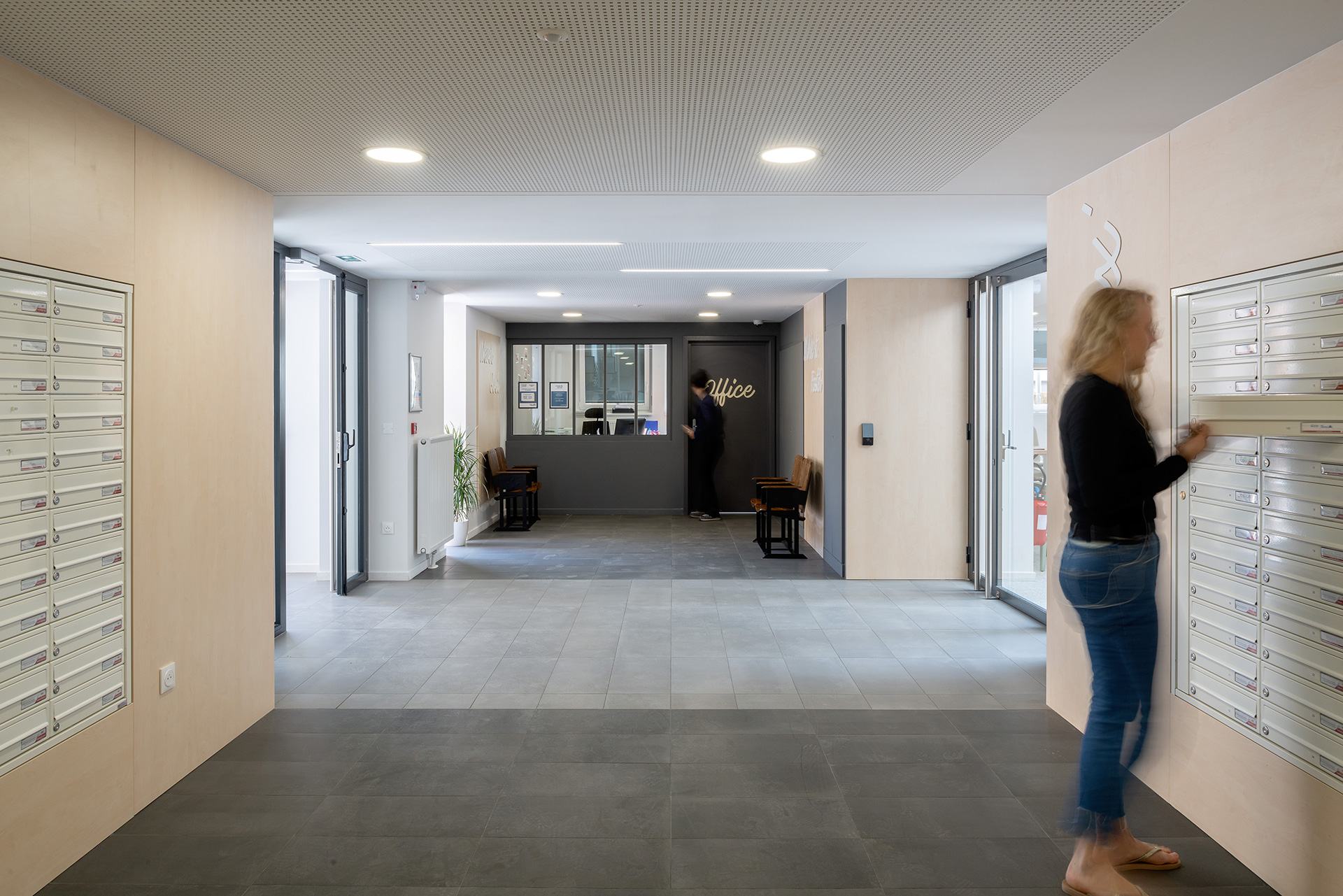 Au cœur du projet, l’introduction d’une verrière transforme les espaces communs en lieux lumineux et généreux, propices aux rencontres, au temps de travail partagé et à la vie collective. Une reconversion qui conjugue mémoire du bâti, sobriété constructive et qualité d’usage.